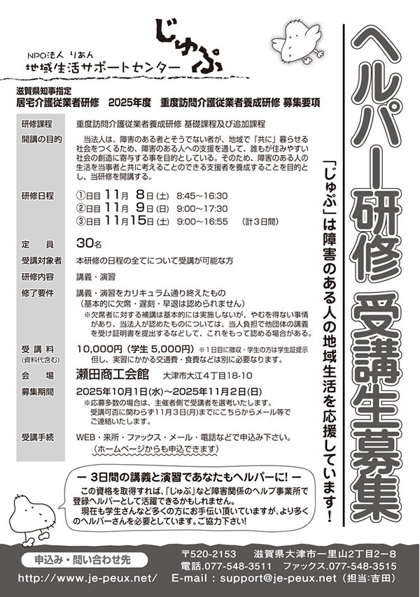 この年からだれもが地域で当たり前に暮らせるようにと、じゅぷのヘルパーに限らず、広く一般の人たちを対象に、人権セミナーを開催することとなりました。